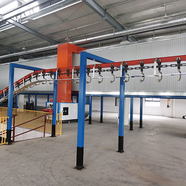 1) Pre degreasing -2) degreasing -3) first water washing -4) second water washing -5) surface conditioning -6) phosphating -7) third water washing -8) fourth water washing -9) pure water washing -10) electrostatic spraying -11) curing