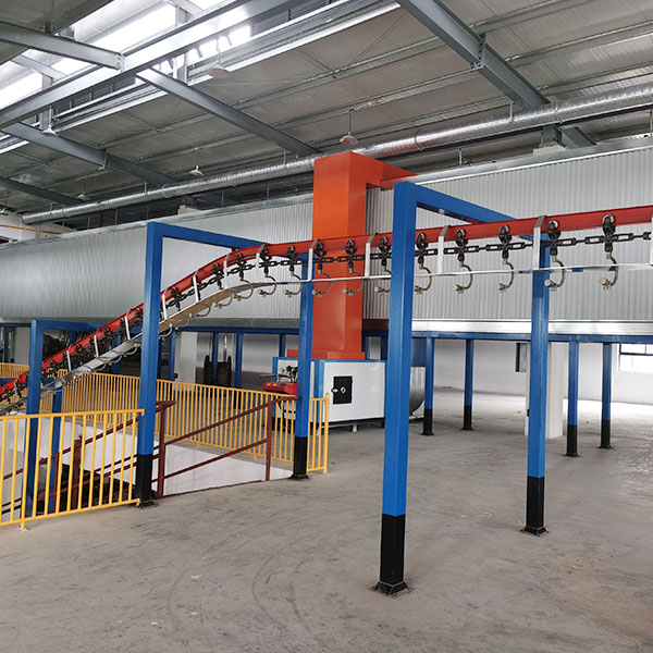 1) Pre degreasing -2) degreasing -3) first water washing -4) second water washing -5) surface conditioning -6) phosphating -7) third water washing -8) fourth water washing -9) pure water washing -10) electrostatic spraying -11) curing